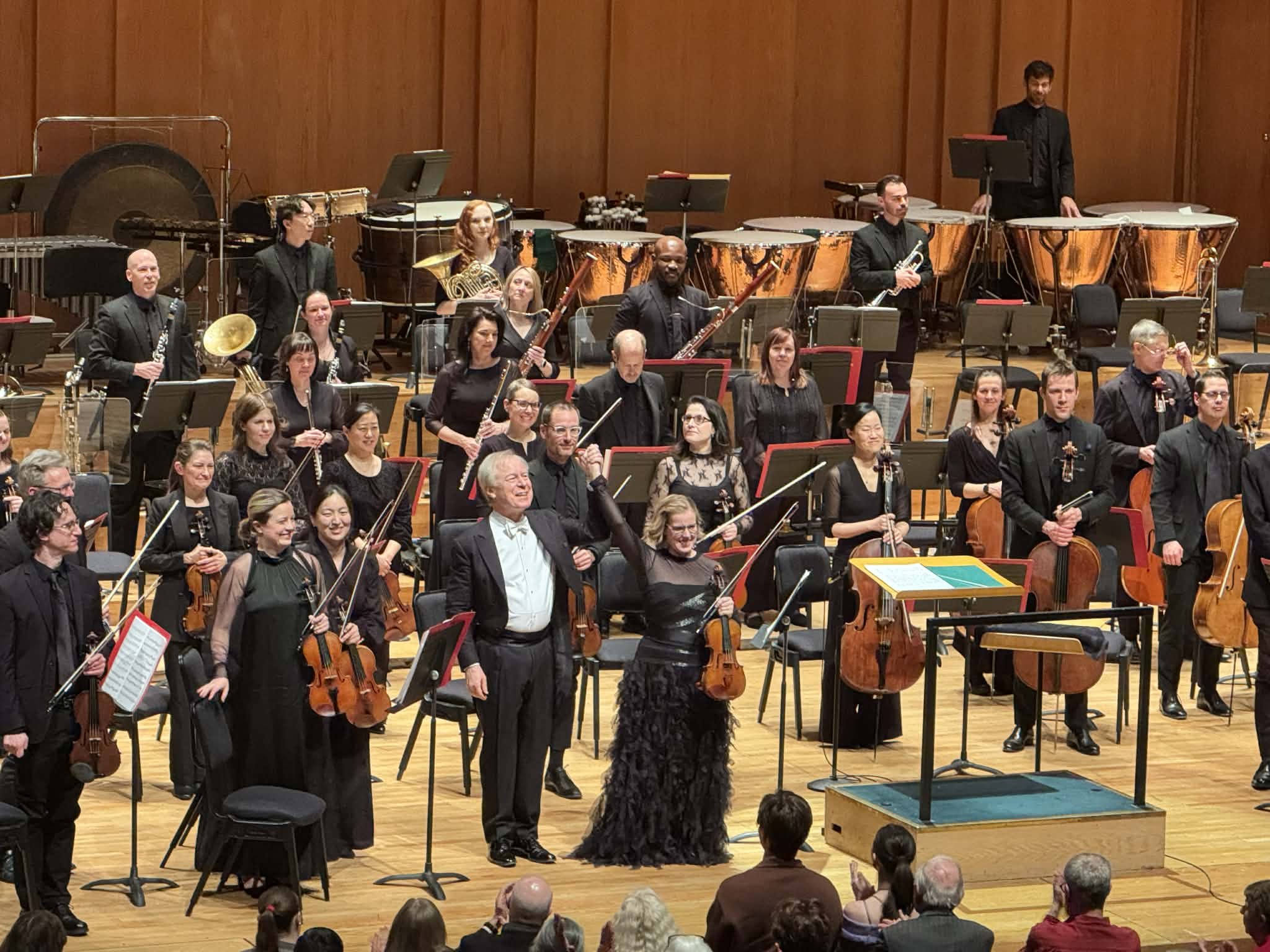 “In the opening movement, the soloist, playing with only a very few pauses carries the melodic thrust of the music, over a repetitive, static accompaniment. Adkins’ engaging account emphasized the duality of the movement’s structure; she soared over the orchestra in her flights of fluid lyricism. And Robertson never let the orchestra overpower her, allowing the soloist to shine as the dominant voice.